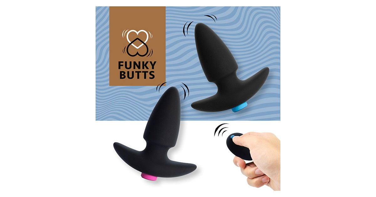 FunkyButts di Feelztoys è un set di 2 plug anali vibranti con telecomando per coppie che possono essere indossati da entrambi i partner contemporaneamente durante il rapporto. Il telecomando può essere utilizzato per entrambi i tappi di testa, che possono essere azionati singolarmente.