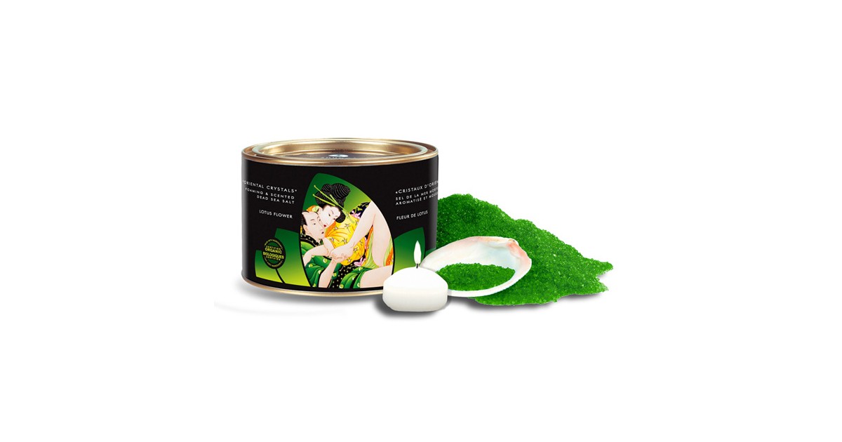 Cristalli di sale marino aromatizzati alla fragranza dei fiori di loto; sperimenta un bagno sensuale con il tuo partner in una vasca da bagno piena di acqua calda colorata, profumata e con tanta schiuma e bolle afrodisiache... il giusto preludio a momenti di pura passione! Devi soltanto lasciar dissolvere il sale sotto acqua calda quando riempi la vasca.