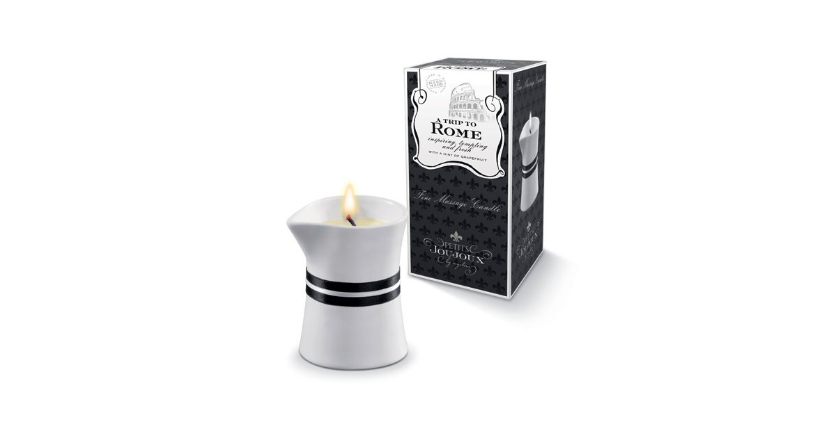 Le squisite candele da massaggio Petits Joujoux sono disponibili in 6 seducenti fragranze, che sono state scelte rappresentative di 6 fantastici luoghi: "Un viaggio a Roma" è un profumo stimolante di pompelmo, ammaliante con fresca eleganza e una spezia sexy grazie a un accenno di secco bergamotto.