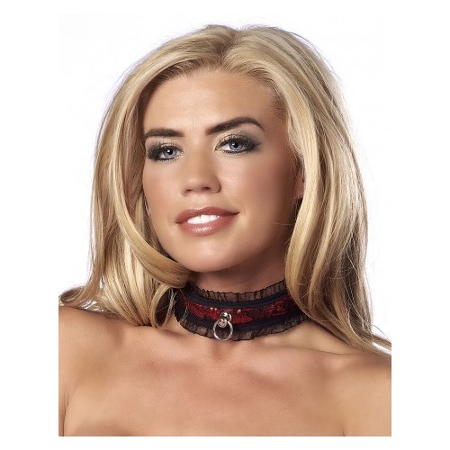 Collare Effetto Raso con Anello in Metallo e chiusura in pizzo sul retro