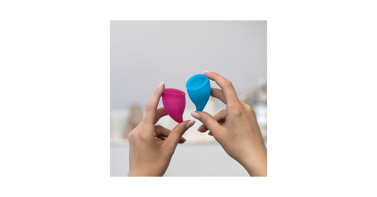Due coppette mestruali in silicone Fun Cup taglia A 20 ML e borsetta antimicrobica
