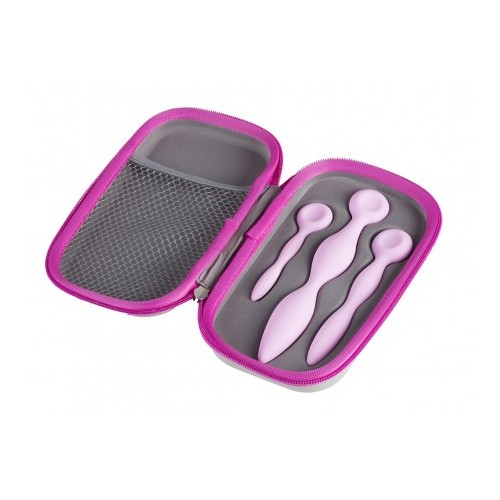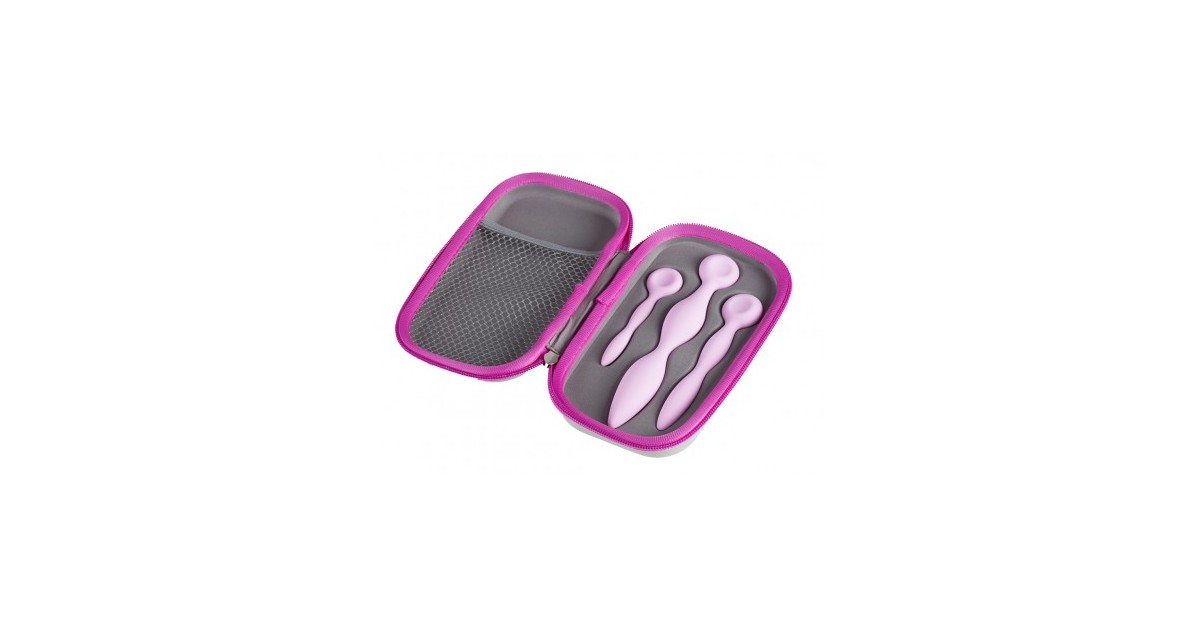 Un sistema di rieducazione che offre 3 dispositivi ergonomici intravaginali di diverse dimensioni e diametri per esercitare ed espandere gradualmente il canale vaginale.
