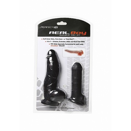 In questo set di Perfect Fit troverai una combinazione di un dildo e una guaina per il pene, che ti danno 4 in 1: masturbatore, extender pene, dildo e dildo più grande real feel.