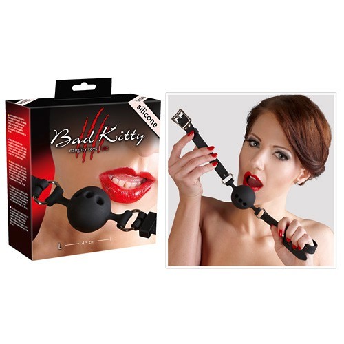 Ball gag realizzata completamente in silicone morbido per una maggior resistenza e comfort. Gag con fori per la respirazione del diametro di 4,5 cm. Colore nero