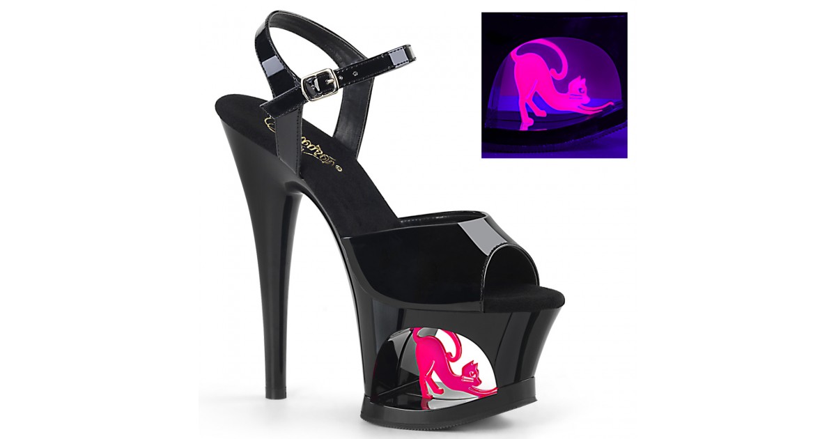 Scarpe MOON709 con gatto uv nel platform - laccio caviglia tacco 17,8 cm zeppa 7 cm