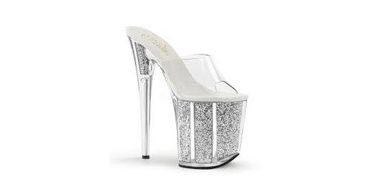 Flamingo sandali glitterati argento internamente tacco 20cm zeppa 10 cm fascia trasparente nr 36
