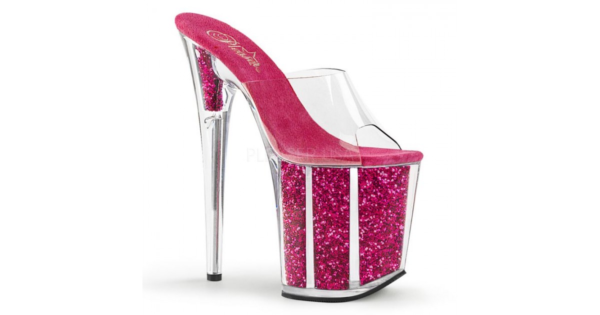 Flamingo sandali glitterati fucsia internamente tacco 20cm zeppa 10 cm fascia trasparente nr 36