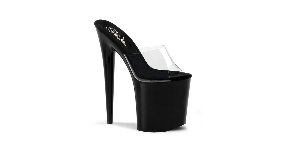 Flamingo plateau 10cm, tacco 20cm, colore nero fascia trasparente nr.36