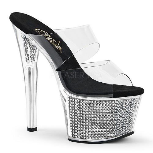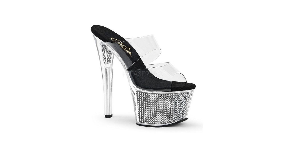 sandali tacco 17cm, plateau glitterato 7cm, doppia fascia trasparente, nr.37