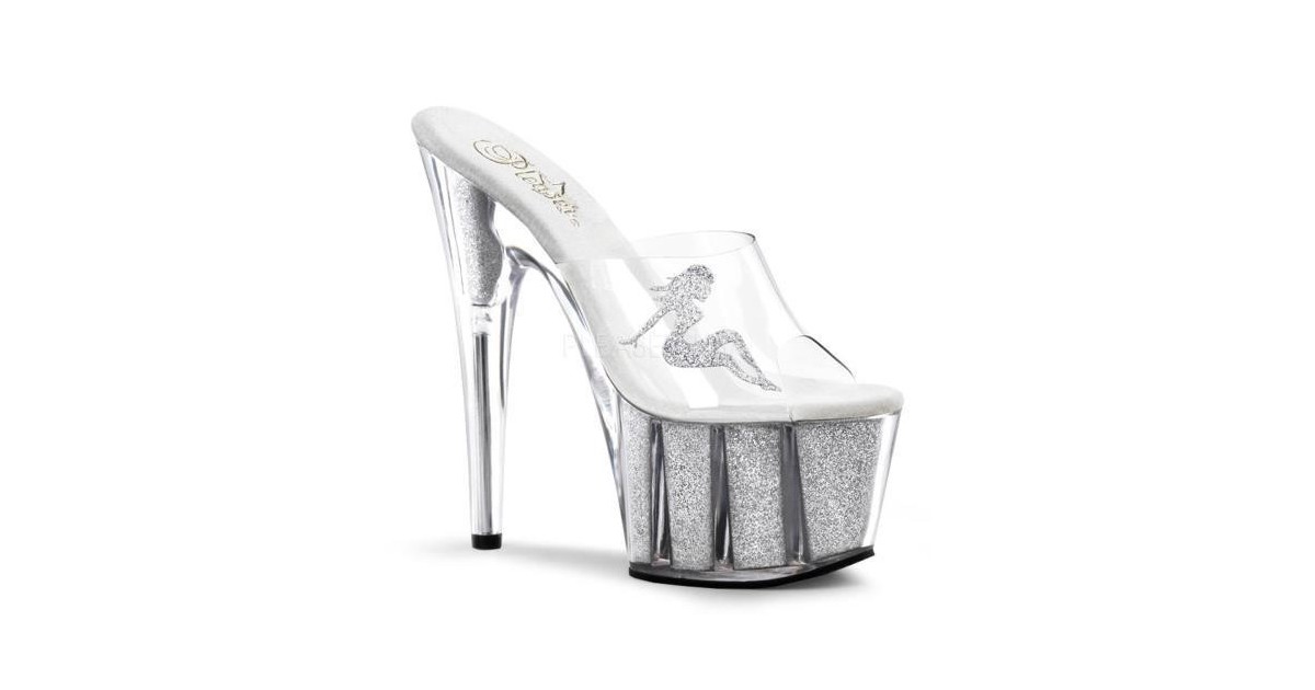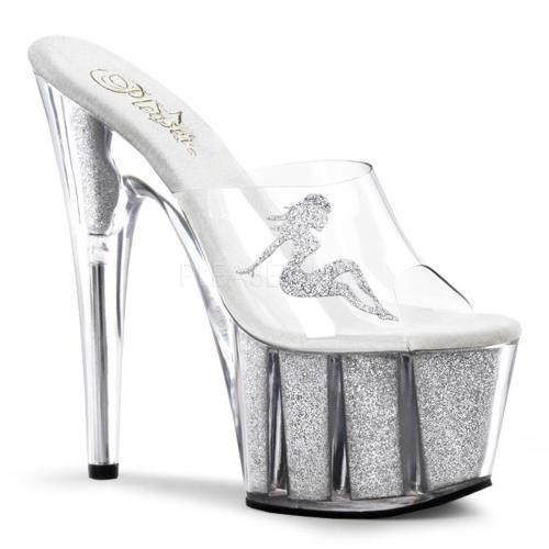 ADORE-701 stiletto glitterato argento internamente con figura donna tacco 17 cm zeppa 7 cm fascia trasparente nr 39