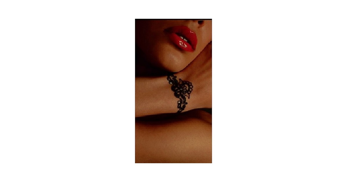 Tatuaggio provvisorio impermeabile, ipoallergenico di colore nero con brillantini. Lungo circa 8 centimetri.