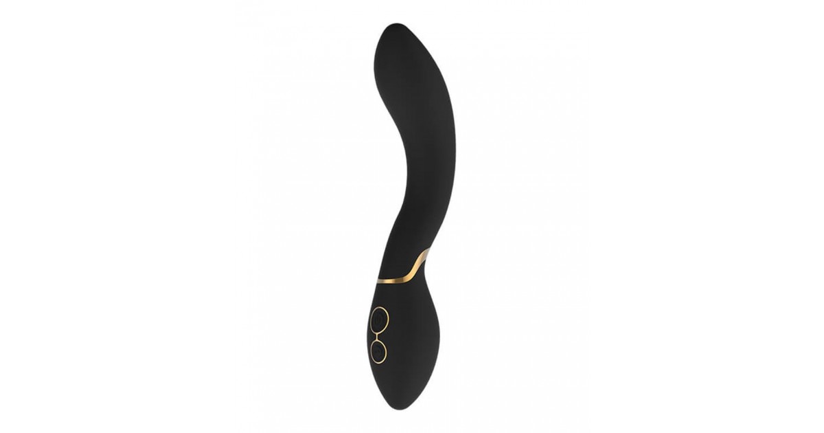 Il vibratore Josephine della collezione Elite di Dream Toys è un vibratore nero con eleganti accenti color oro, una forma curva e una testa piuttosto grande e flessibile.